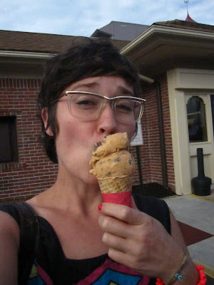 joe has been getting this since he was a kid = coffee ice cream, strawberry topping, whipped cream and gummy bears. ... i gotta say, it's pretty good.